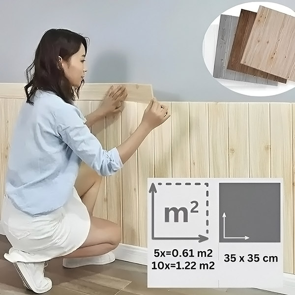 Každé balenie obsahuje 5 kusov (35 x 35 cm), ktoré pokrývajú 0,61 m². Pred začatím si vypočítajte, koľko balení budete potrebovať na základe plochy steny. Pre väčšie priestory si kúpte viac balení a využite množstevné zľavy!
