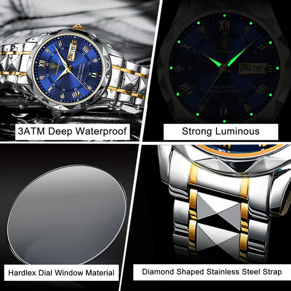 Svietiace ručičky a značky zostávajú čitateľné pri slabom svetle aj v noci.