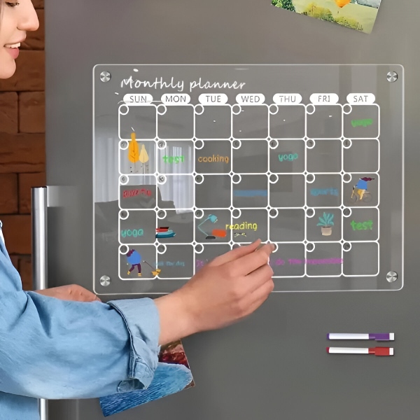 Papierové plánovače sa po mesiaci vyčerpajú a skončia v koši. Číry akrylový povrch sa úplne dočista utrie v priebehu niekoľkých sekúnd pomocou priloženej handričky – žiadne stopy, žiadne škvrny, žiadne zvyšky. Povrch je odolný voči poškriabaniu a škvrnám, takže zostáva krištáľovo čistý aj po stovkách zmazaní.