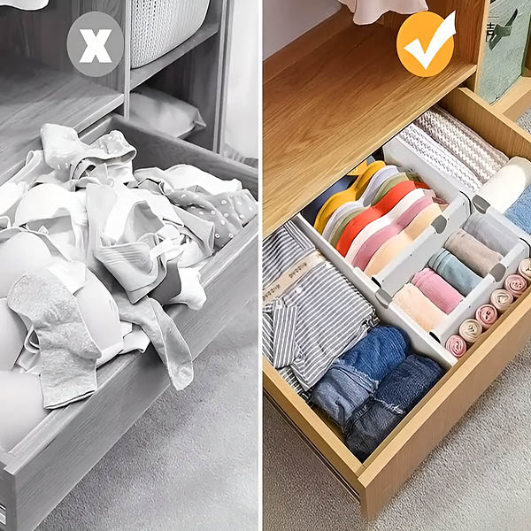 Či už ide o kuchynské náradie, kúpeľňové potreby alebo ponožky v spálni, tieto priečky sa dajú nastaviť od 28 cm do 45 cm, aby pasovali do väčšiny zásuviek. Priestor si môžete prispôsobiť presne podľa svojich potrieb.