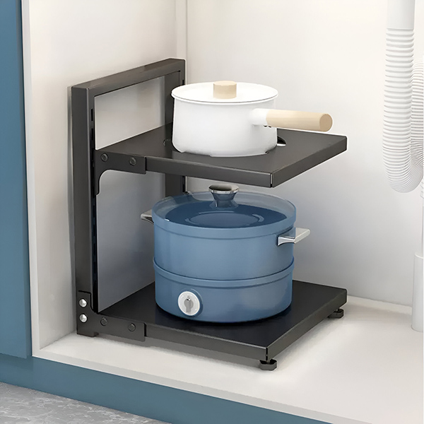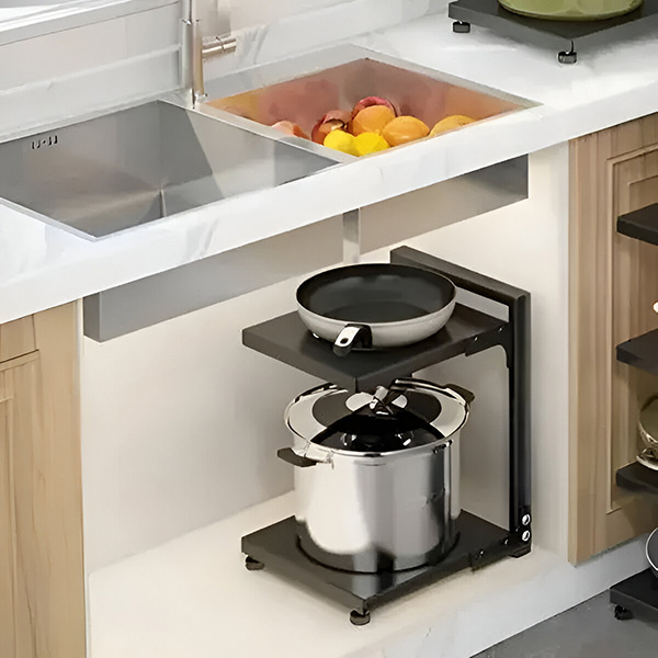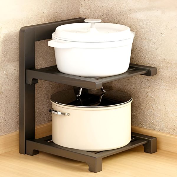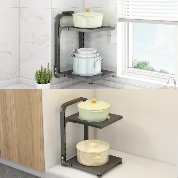 Zorganizujte si kuchyňu s ľahkosťou! Tento stojan na hrnce s dvoma policami je ideálny pre každú skrinku a je dokonalým riešením pre upratanú kuchyňu.