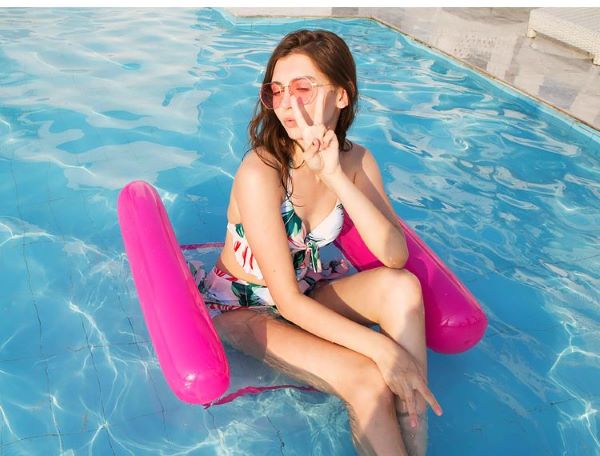 Pohodlný a štýlový hamak do vody má v strede časť na sedenie zo sieťoviny, ktorá sa postará o udržanie čiastočného ponoru a chladenie, zatiaľ čo podpora hlavy/krku poskytuje perfektnú relaxáciu.