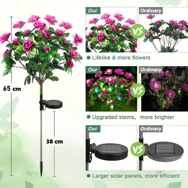 🌸 Premeňte svoju záhradu pomocou solárnych realistických kvetov azaliek, ktoré sa automaticky rozsvietia za súmraku.