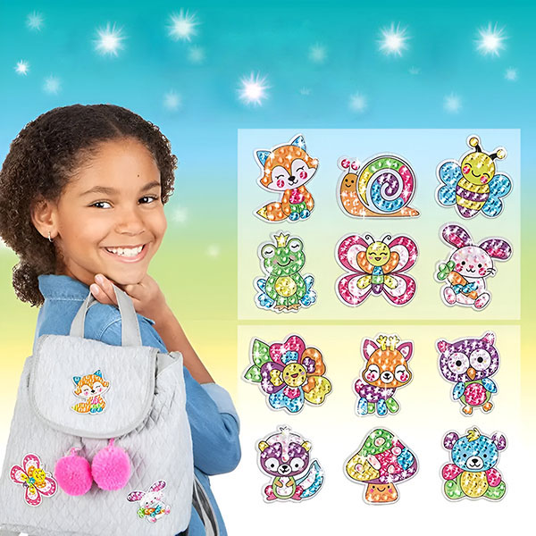 Ľahko zdobte, prispôsobujte a pridávajte lesk každodenným predmetom. Táto všestranná súprava umožňuje deťom aj dospelým ozdobiť si fľaše na vodu, zápisníky, obaly na telefón a ďalšie predmety. Jednoduché predmety premení na oslnivé majstrovské diela. Je zábavná, vzdelávacia a ideálna pre všetky vekové kategórie!