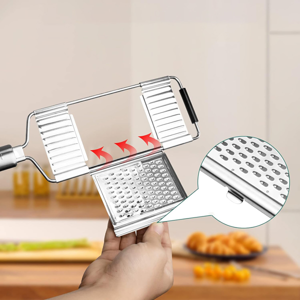 Vyrobený z vysoko kvalitnej nehrdzavejúcej ocele, krájač na zeleninu SLICEIEST je odolný voči korózii a navrhnutý pre dlhodobé používanie. Protišmyková rukoväť poskytuje extra bezpečnosť, čo ho robí bezpečným a ľahko použiteľným, aj keď máte mokré alebo mastné ruky.